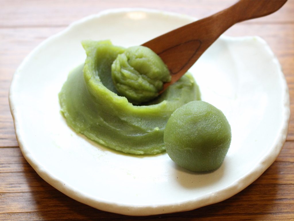 This is a type of anko made by mixing white anko with ingredients like mochi flour, yam, and wheat flour, then kneading it together. When colored and shaped, it becomes “nerikiri,” a well-known type of wagashi often used for upscale confections.