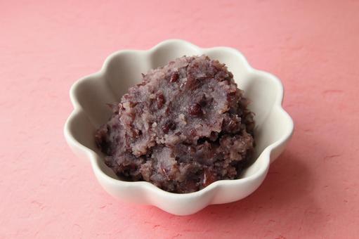 This refers to koshian (or zubushi an) mixed with whole cooked adzuki beans that have been simmered in sugar. It typically combines standard koshian with large, firm adzuki beans(Dainagon), allowing for a pronounced bean texture.