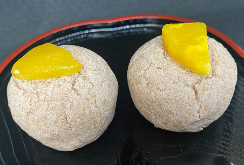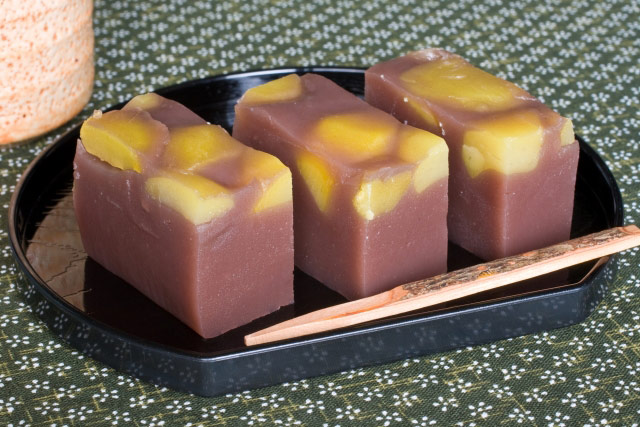 A sweet made by placing chestnut on top of steamed yokan made of sweet red bean paste mixed with wheat flour.