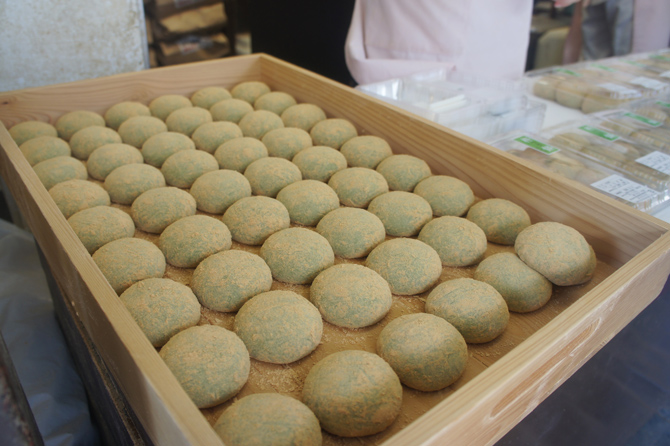 These allow you to fully enjoy the flavor of yomogi. They may be round like dumplings or shaped like plain mochi. You can enjoy them with kinako, syrup, or with anko served on the side.