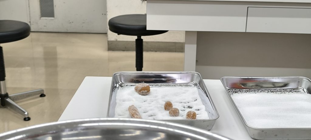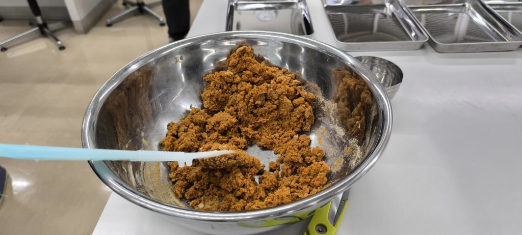 While the Minazuki was cooling, we also made Suhama—a semi-dry sweet made with roasted soybean flour (kinako).