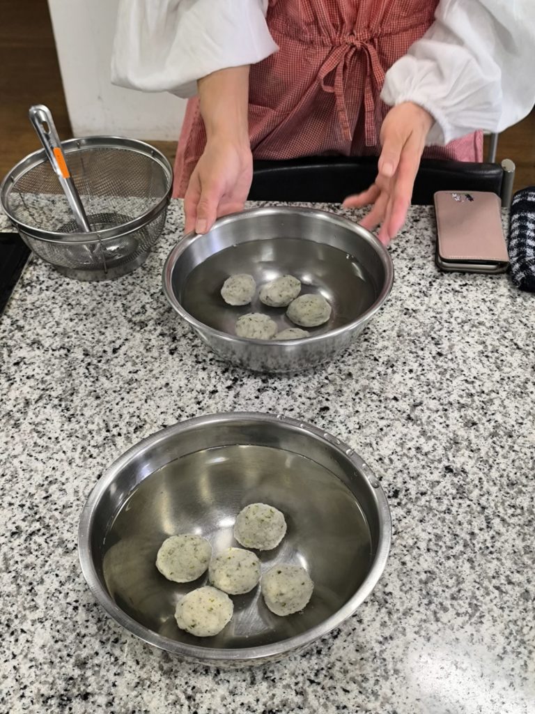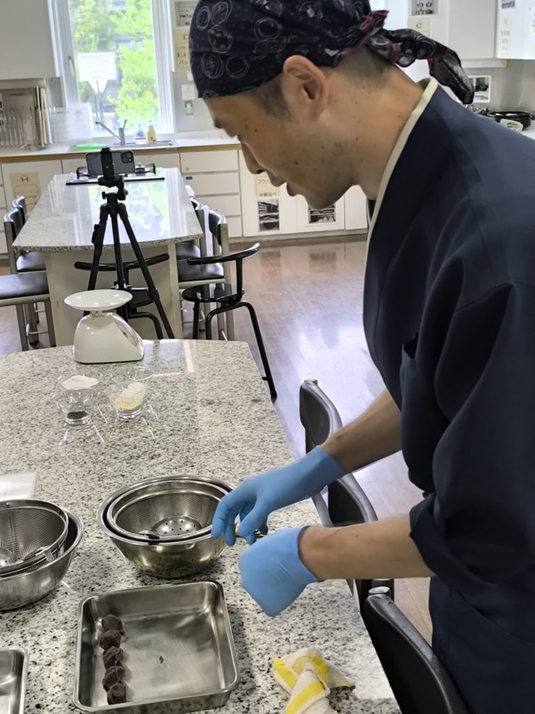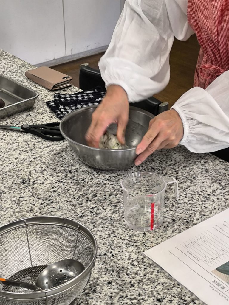 During the next step—wrapping the sweet bean paste—everyone chatted and enjoyed the process in a relaxed, friendly atmosphere. Even first-time participants seemed to have fun as they worked with their hands.