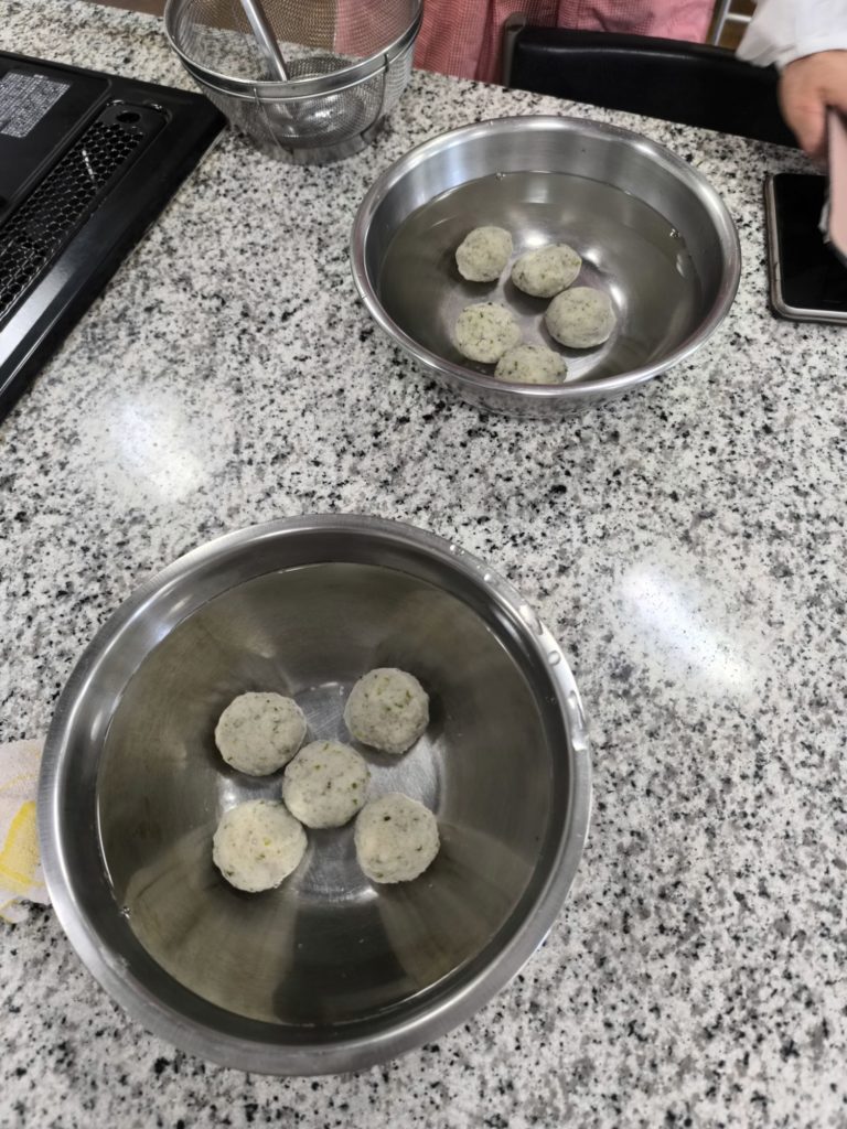 Once the dumplings were wrapped, we boiled them for about 7–8 minutes and then cooled them in ice water. While waiting, everyone took part in the Fumanjū Quiz I had prepared.