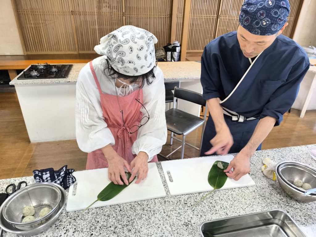After the quiz, we moved on to wrapping the dumplings in bamboo leaves. Since I’ve been doing this since my apprenticeship days, it feels second nature to me—but for many participants, it was their first time. As I shared some tips and we worked on it together, I heard lots of happy comments like “This is so fun!”